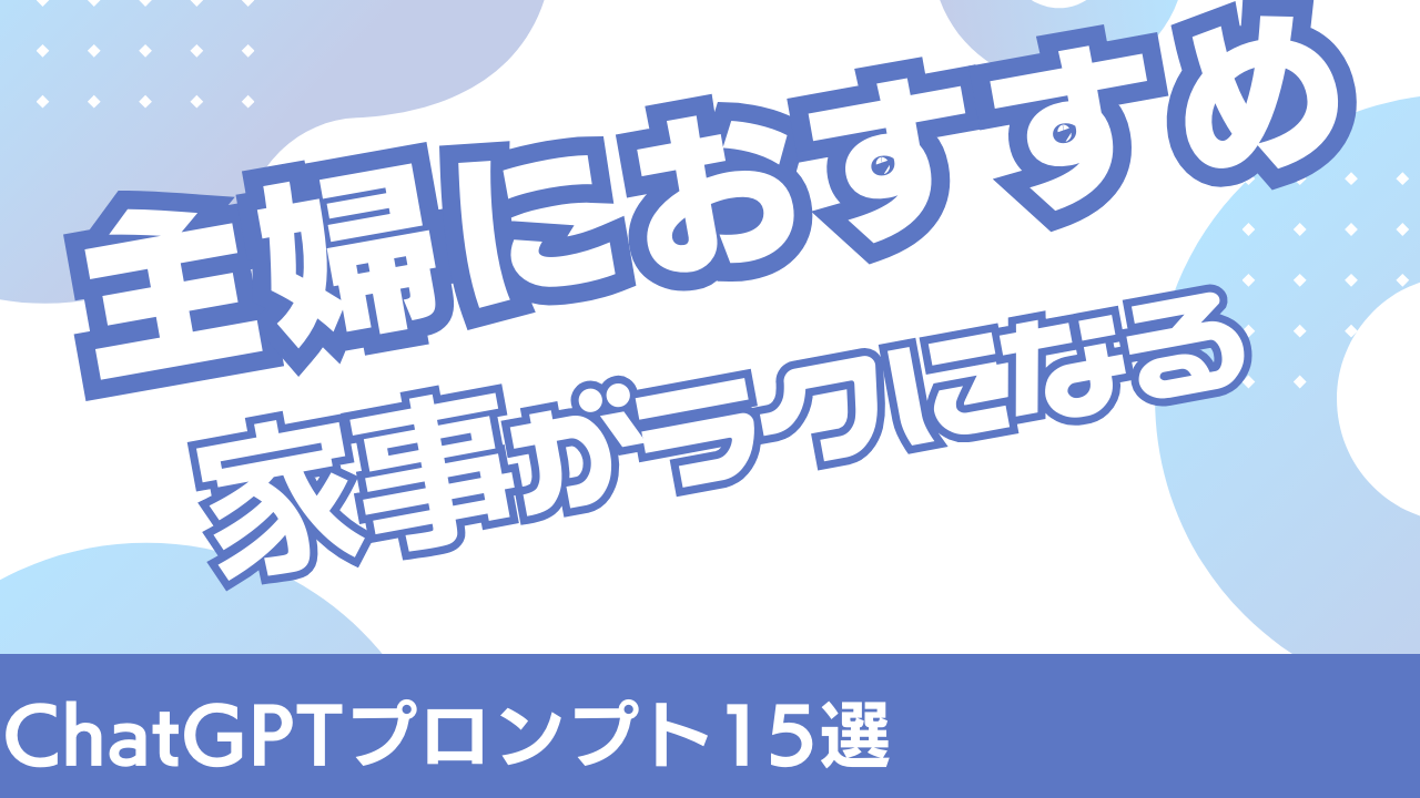 この記事では、ChatGPTを使って家事がラクになる「おすすめプロンプト(話しかけ方)」を15個ご紹介します。