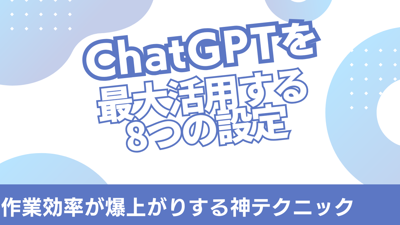 ChatGPTの**作業効率を劇的に上げる「神設定8選」**を初心者にもわかりやすく紹介します。