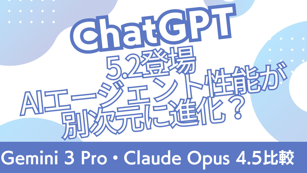 ChatGPT-5.2登場|AIエージェント性能が別次元に進化?Gemini 3 Pro・Claude Opus 4.5と徹底比較