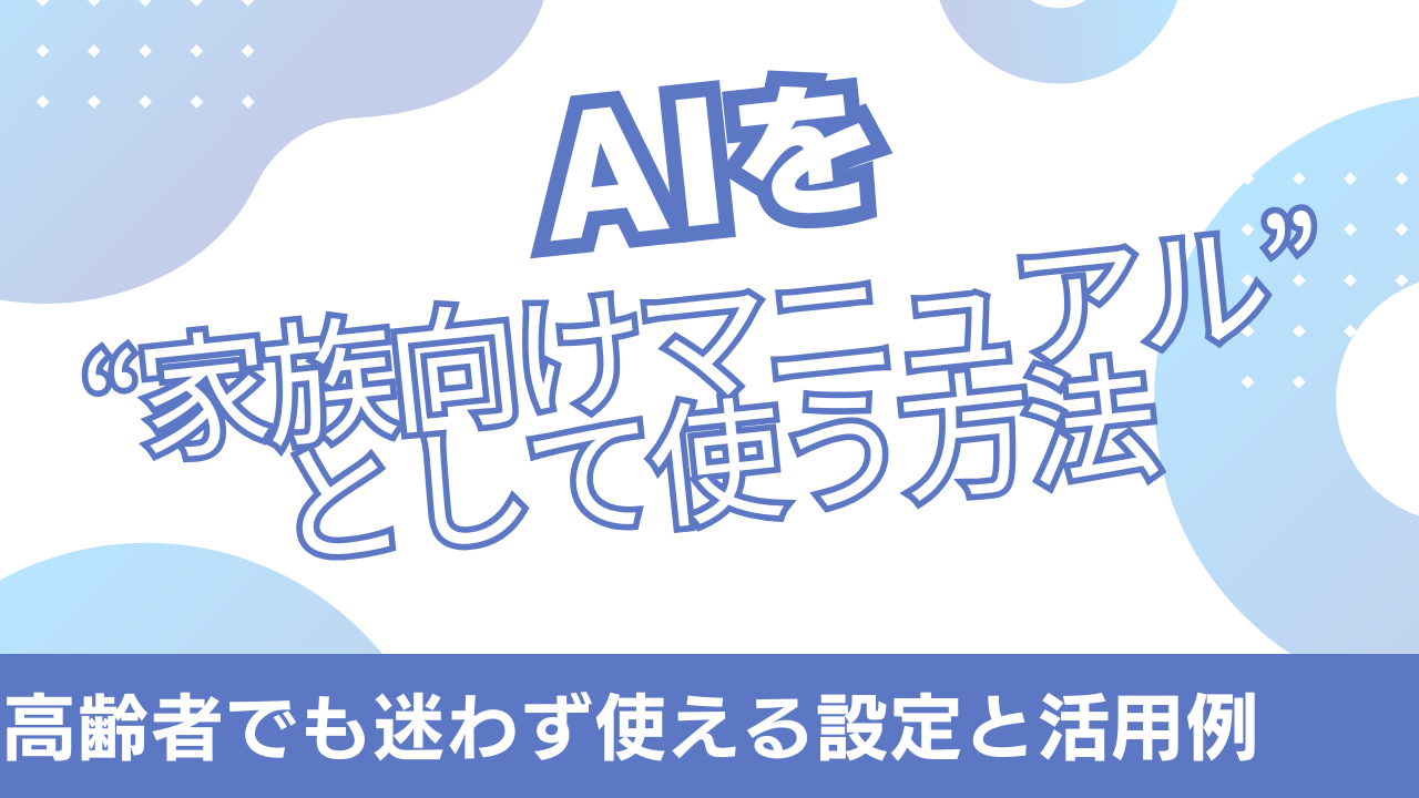 この記事では、AIを高齢者が頑張って覚えるものとしてではなく、 家族向けマニュアルそのものとして使う考え方を紹介してきました。
