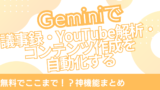 YouTube解析や議事録など、 Geminiによる情報整理をもっと活用したい場合は、 こちらの記事も参考になります。