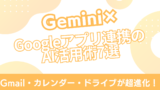 Gmail処理に限らず、 Gemini×Googleアプリ連携の全体像を知りたい場合は、 次の記事も参考になります。